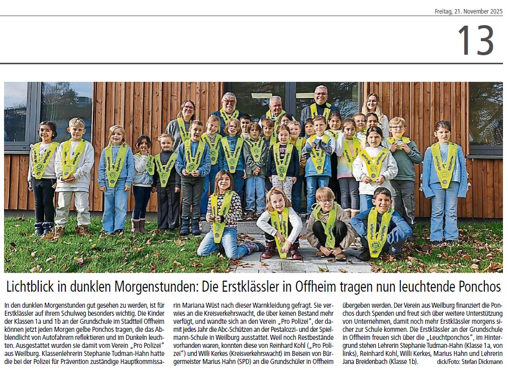 Auch die Grundschule in Offheim hat unsere Sicherheitswesten erhalten. Weitere Details im Artikel des WT: